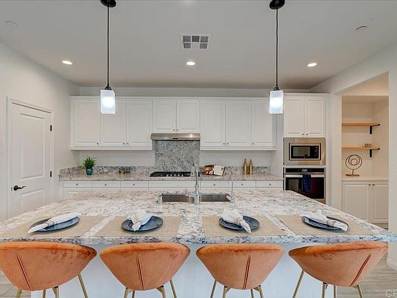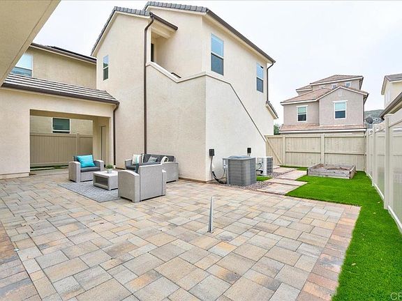Welcome to this stunning 5-bed, 3.5-bath home nestled in the desirable Harmony Grove Village. Upon entering the main residence, you'll find an open-concept design that seamlessly blends the living room, dining area, and kitchen, creating a perfect space for entertaining or spending quality time with family. As a bonus, this home comes with the latest design concept called the FROG(Free Room Over Garage). The FROG is a detached 440 sq ft space with separate entrance, provides a versatile space that can be used as an ADU to generate income, Bedroom, Home Office, Rec Room, Gym, Media Room or combination. The well-appointed kitchen is a chef's dream, complete with a 5-burner cooktop and Kitchenaid refrigerator, granite countertops, and walk in pantry for all your culinary needs. A large center island with a breakfast bar provides an additional space for casual dining. The home features four spacious bedrooms in the main house, each offering comfort and privacy plus the 5th “FROG” room. The primary bedroom is a true retreat, featuring a generously sized bedroom with large windows, a walk-in closet, and an en-suite bathroom. The guest bedroom is conveniently located off the entrance on the first floor. 4.52 kw 15 panels Solar System is paid in full and currently meets nearly a 100% of the owners electrical costs. Recently installed whole house water conditioner with built in filtration system in the kitchen provides sparkling water. Tankless water heater provides on demand endless hot water. Slide open your stacking sliding doors and enjoy the perfect indoor/outdoor California living. Outside, the yard offers a peaceful sanctuary for relaxation, whether it's hosting barbecues, picking vegetables from your garden, or simply unwinding on a sunny day, the outdoor space provides endless possibilities. As you enter the community you are greeted by the numerous parks, playgrounds, hiking trails, junior Olympic sized pool with splash pool and hot tub.