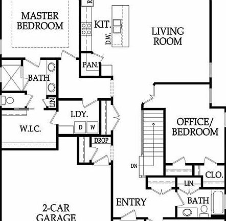 This flexible floorplan offers the option of 3 bedrooms or 2 bedrooms plus a dedicated office. The spacious living room flows into an open kitchen with custom cabinetry and a generous pantry, perfect for both daily living and entertaining.