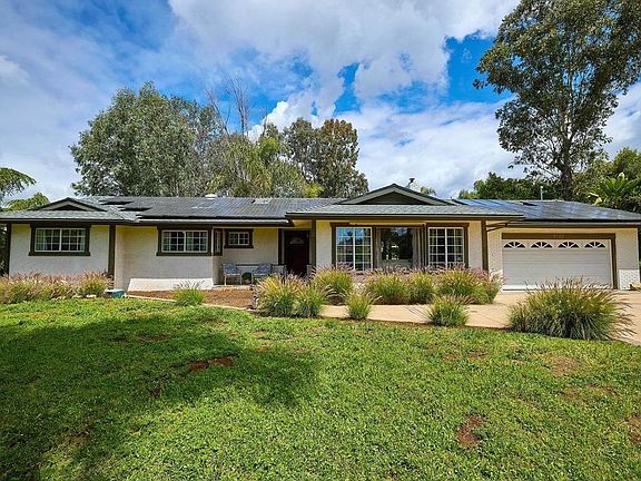 **Secluded on a private, quiet road with a gated entry in sought after Foothills neighborhood**Single level, custom ranch house on flat, 1.25 acres, with endless opportunities** Vistas of mountains and colorful open sky sunsets. Catalina Island and Mt. Orizaba on a clear day** Cool ocean breezes** Lease PAID Tesla Solar System with 46 panels, lovely upgrades, spacious kitchen with granite counters and stainless appliances, oversized garage**Fully fenced flag lot with private gated entry, * *Located in unincorporated area of San Diego County for development**Convenient to shopping, restaurants, golf, entertainment, parks and walking trails.