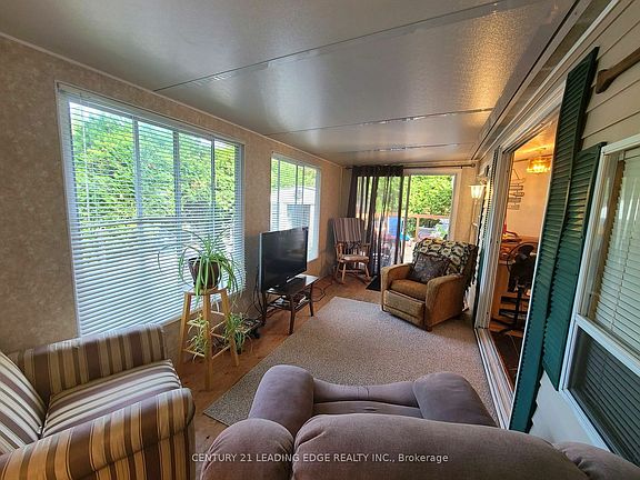 Start Enjoying The Kawartha Lakes and take this opportunity to own this cozy 38ft x 10ft Park Model with 2 bedrooms and 1 bathroom in Nestle In Resort (Sleeps 5-7). The space boasts an eat-in kitchen, living room and an additional Florida room 8ft x 17ft. Enjoy endless sunsets on the 8ft x 18ft deck. With some of the best beach and waterfront access in the area, Nestle In Resort is the perfect getaway for the entire family! The resort is conveniently located only 30 minutes from Peterborough, and less than 10 minutes to Bobcaygeon. Open from mid May until mid October. Enjoy all the resort has to offer: Recreation Hall. Heated Pool and Children's Wading Pool, Beach, Fishing Dock, Boat Docks/Launch, Basketball Court, Playgrounds, Horseshoe Pits, Jumping pillow, Beach volleyball court, plus Planned Activities & Events! You can boat along Emily Creek into Sturgeon Lake & the rest of the Trent Severn Waterway.