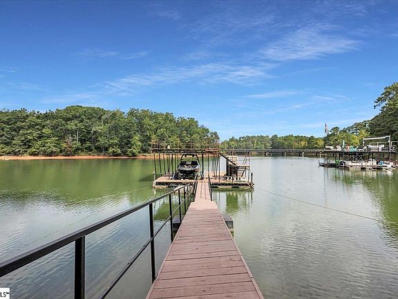Welcome to 2152 Deloach Dr, a stunning and versatile deepwater lakefront property in the heart of Anderson, South Carolina. This unique home features a main residence and a detached 5-car garage with fully equipped living quarters above, which includes three of the five bedrooms. The primary residence offers an inviting open-concept layout, seamlessly connecting the living room, dining area, and kitchen, creating a perfect space for entertaining or relaxing. It includes two spacious bedrooms, two full bathrooms, a modern kitchen with ample cabinetry and a center island, and a primary suite with a walk-in closet, ensuite bath, and deck access with gorgeous lake views. Above the detached garage, the separate living quarters feature three bedrooms, one full bathroom, a full kitchen, a dining area, a living room, a private entrance, and a lake-view deck, making it ideal for guests, a rental opportunity, or a private retreat. The oversized garage provides ample storage for vehicles, a boat, and lake gear, plus a billiards room on the main level for added entertainment. The property features a DEEDED, MAX TWO-LEVEL BOAT DOCK, and an installed boat lift, providing immediate lake access with 30+ feet of water depth for an unparalleled waterfront experience. Getting down to the dock is a breeze with a newly installed concrete path! Located just two miles from the highway, this home offers easy access to parks, schools, shopping, and dining while providing the ultimate lakefront lifestyle. Don't miss the opportunity to own this remarkable property, schedule a showing today at 2152 Deloach Dr, Anderson, SC 29625.