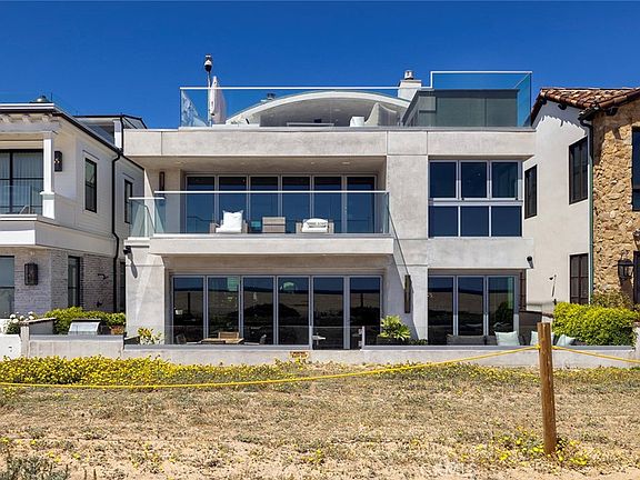 Located on the sand in Newport's desirable Peninsula Point oceanfront (no boardwalk only six houses from the wedge) this home boasts stunning white water ocean views including the famed Wedge surf break to Catalina Island. Wake up to the sound of the surf and breathtaking sunrises while enjoying coffee on your private bedroom terrace. This architectural masterpiece, designed by Oatman Architects, features extraordinary construction that highlights timeless materials like glass, steel, stone, and wood, creating a perfect balance of contemporary and classic Newport Beach luxury living. The indoor/outdoor design maximizes stunning panoramic views using state-of-the-art fold-away doors and Porcelanosa floors. Four spacious bedrooms with en-suite baths, a sun-filled primary suite with a seaward facing private deck, and a spa bath with a steam room shower makes for an incredible living experience. Relax in your Stoneforest soaking tub of a solid carved marble block. The glass staircases lead to a grand entertainment area with panoramic views of the ocean and bay, a stainless steel hot tub that immerses your guests in Pacific Coast luxury. The third floor features outdoor entertainment and amenities including barbecue station, fireplace, large TV, shuffle board and a large seating area to view those special days when world-class surfers challenging the break of the infamous Wedge. With spectacular sunsets and stunning views of Fashion Island, this remarkable home delivers the ultimate in coastal living lifestyle. Additional features include Control 4 home automation, a security system, built-in audio, automatic window shades, a laundry room, and three-car garage make living easy. Peninsula Point is coveted as one of Newport's most prestigious neighborhoods with convenient access to Harbor activities.