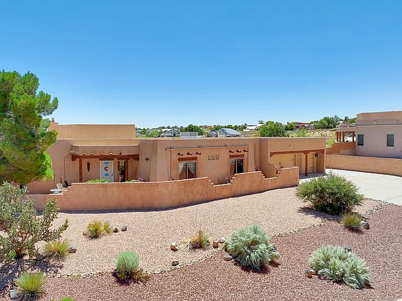 Situated on an elevated 1/2 acre lot that captures panoramic views of the Sandias, this beloved southwestern style oasis features beam ceilings and a tongue and groove 15' living room ceiling (refinished 2019), solid hickory kitchen cabinets and granite countertops (2018), soft close vanity in primary bathroom (2020), refrigerated air (2016) and radiant flooring throughout. TPO roof installed on main house (excluding patio roof) 2019, septic replaced 2017. Windows in front bedrooms (not primary) replaced 2024 (w/ transferrable warranty). Power up with 200amp service and an RV Pad. Whether entertaining guests or enjoying a quiet night overlooking the city's glimmer from your meticulously landscaped backyard, this property has everything you need to live well on Gazelle!