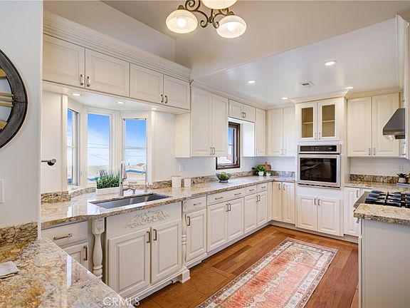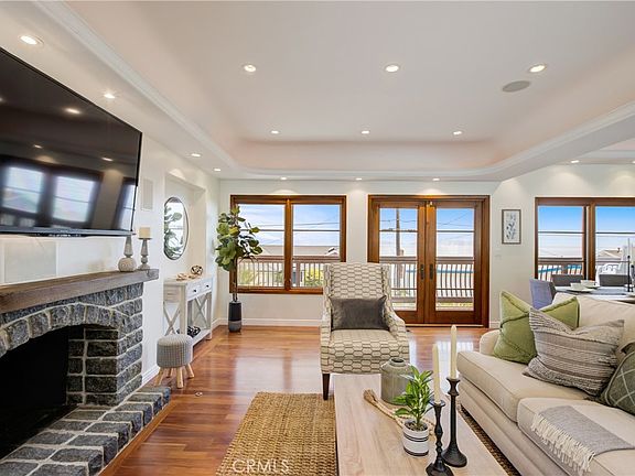 You've got to get eyes on this South Shores Beauty with Spectacular and Sweeping Ocean and face-on Catalina Island views! A rare find in this sleepy beach neighborhood with 3 full bedrooms and 2 1/2 bathrooms, all remodeled with Designer touches throughout and incredible views from every window upstairs in this Reverse floor plan home with Living/Dining/Kitchen and Primary Suite all upstairs and two remaining bedrooms, full bathroom and Family room with large fireplace all downstairs leading out to a bright and private patio area. Floors have been connected by a convenient Stiltz Homelift. The kitchen has been extended and beautifully curated by current owners with all Stainless Steel Appliances (inc. Frigidaire Gallery Side-Swing Wall oven; Thor Kitchen 6 burner Pro Cooktop; Broan Elite Range Hood; LG Energy Star French Door Refrigerator; & Fisher & Paykel DishDrawer Dishwasher), Kraus Standart Pro Sink; Pentair Everpure Drinking Water System; French Provincial-style custom cabinets; & Granite counter tops. The powder room has been tastefully updated, and the open wood beam Primary Suite includes a full and stunning en Suite bathroom with white Quartz counter tops, double floating Alabaster sinks and glass barn door shower enclosure, and leads out to a private and tranquil garden space. Gleaming Cherry Wood floors throughout with Dual pane windows and zoned HVAC system with A/C as well. The open and inviting living space boasts a warm stone fireplace and floor-to-ceiling windows facing the ocean with a lovely long balcony to enjoy sunsets and feel the breezes! The bedrooms downstairs have ample closet space and recessed lighting, and the bathroom has a lovely Coastal vibe with step-in stone shower in cool blue tones. Don't miss the 3 unique yard spaces, the final one just outside the front door with built-in grill and burner to BBQ with family and friends. Another must see is the finished separate office space above the garage (not inc. in square footage) but PERFECT for an office space, home gym or reading room with stunning views! Let's not forget all of this is in the heart of South Shores with access to South Shores Award Winning Elementary School, The Friendship Bell, Cabrillo Beach and hip eateries, coffee houses and shops!