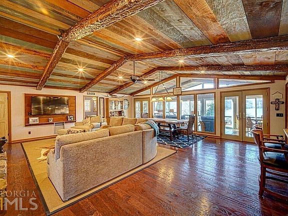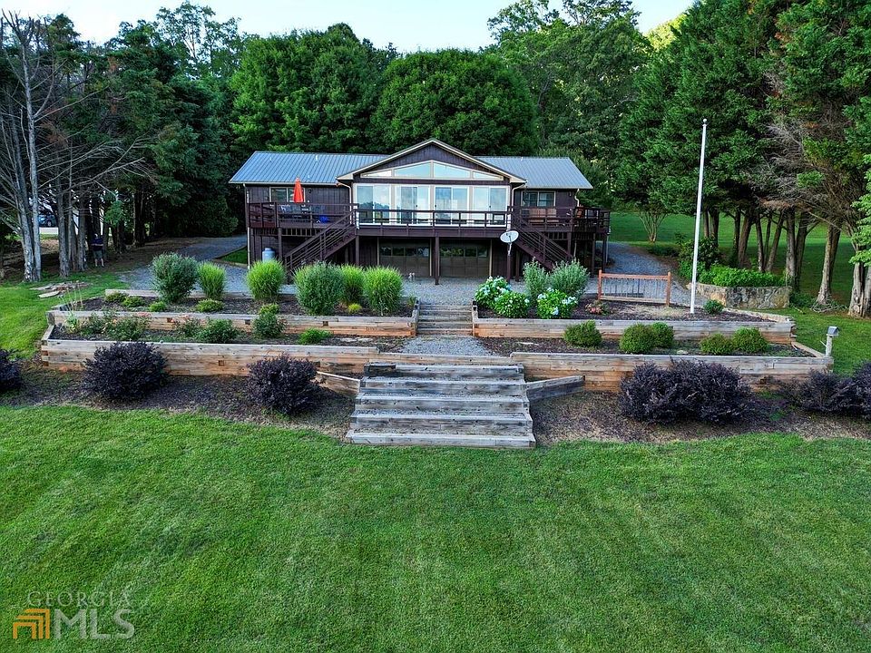 Rare opportunity for a Lake Chatuge deepwater 1.1 acre legacy property! Enjoy your privacy in the desirable Cedar Cliff neighborhood. The waterfronts gently sloping yard, tiered garden, new aluminum walkway & dock, & new fire pit lead to lake.The updated 5 Br, 3 Ba, 4,336 sq ft. home sleeps 17 with Master suite, 2 decks, metal roof, distressed wood ceilings, commercial grade flooring, stainless steel kitchen, mountain crafted stone fireplace, wet bar, office, & glassed in sunroom. Downstairs has 2 Br with bath, kitchenette, entertainment room, 9 seat home theatre, 2 car garage, & a kids room for 7! Furnished except for a few family pieces - riding lawn mower & pontoon boat with new outboard negotiable. An extra large lot with 2400 sq. ft. Pole Barn is available to be sold with home, price negotiable.