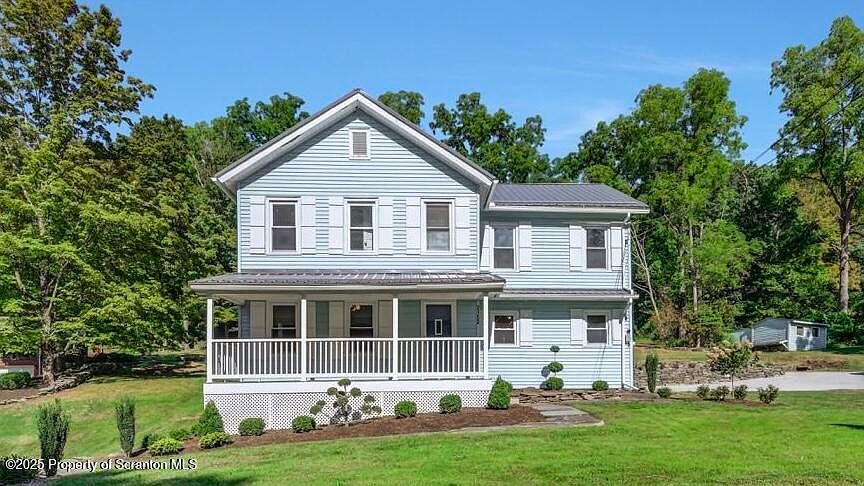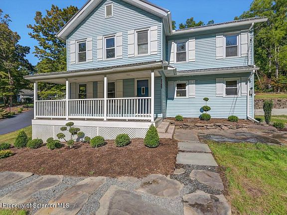 JUST REDUCED! ****Built by Noah Patrick Smith in 1883, this historic home has been beautifully restored with the perfect combination of modern high-end amenities and the preservation of old historic charm. The house is set on a little over an acre of land but backs up to more than 40 acres of a wooded mountain. (Yes, a family of deer will wander through your back field on a regular basis.) Across the road is a walking trail that meanders along Gardner Creek. You couldn't ask for a more perfect setting...and you're in the Abington Heights School District (just 6 miles from the middle school!) On the inside, the kitchen has been meticulously renovated with quartz countertops, brand-new stainless-steel appliances, gorgeous crown molding and a large walk-in pantry. In the dining room, when the layers of paneling and wallpaper were removed during renovations, it revealed the wainscoting that once adorned the dining room. That has now been restored and remains on the wall as a nod to the 142-year history of this home. The living room has a brand-new gas fireplace, new crown molding and new vinyl flooring. Upstairs, there are three bedrooms, with the master bedroom having a large walk-in closet. The bathroom has a jacuzzi tub and separate walk-in shower. Complete with brand new chimney, newer metal roof, new gutters, wired for outdoor hot tub, and extensive landscaping with absolutely stunning stone walls, this house and location are simply incredible!