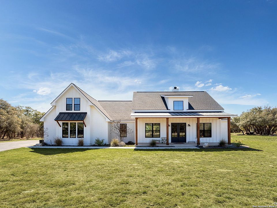 Welcome to the beautiful Texas Hill Country! This custom-built 5 bedroom, 3.5 bathroom home boasts high vaulted ceilings, an open floor concept, and modern finishes throughout. Step into the bright and spacious living room, complete with a cozy fireplace and large windows that flood the space with natural light. The kitchen features stainless steel appliances, granite countertops, a large island, and a big walk-in pantry. Enjoy your morning coffee on the covered patio areas while the raintree sprinkler system keeps your landscape green. The gated community offers many amenities like, equestrian center, river park, pool, and a clubhouse. The fifth bedroom upstairs can be used as a guest suite or a secondary master bedroom. Reach out to schedule your private showing today!