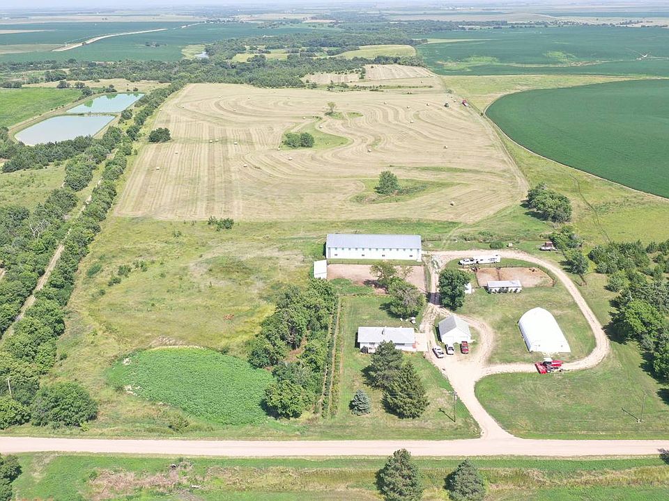 Description: Here is a very nice acreage on the Northeast edge of Campbell, Nebraska. The house is ADA compliant with a wheel chair elevator between floors and a wheel chair accessible shower. On the main floor is 1 bedroom, kitchen, and 1.5 baths. In the basement is 1 bathroom with large wheel chair roll in shower and dual shower heads, family room, 2 bonus rooms, and mechanical room. The house offers look through fireplaces on both the main floor and in the basement. The property has a detached 2-car garage, 3 open front sheds with panel fencing/pens, and a large Quonset building (used for hay storage). Also on the property is a large lighted machine shed, used as an indoor arena, with heat, air compressor, tack rooms, and 4 stalls. Water and electrical are accessible at each pen. Behind the house is approximately 46 acres of grass, with smooth wire fences that are in excellent condition. Legal Description: Lots 6-7-8 in NW 1/4 Section 19, Township 4 North, Range 12 West, Webster County, NE Address: 2152 Road 100, Campbell, NE 68932 Property Taxes: $2,091 Total Acres (per assessor): 46.68+/- Grassland Acres: 42.00 +/- House Features: - 3 Bedrooms, 2.5 Bathrooms - 1,400 sq. ft. main floor - 1,400 sq. ft. basement - ADA Compliant with wheel chair elevator and wheel chair accessible shower - 2 Look-Through Fireplaces Outdoor Features: - 2-Car Detached Garage - 3 Open-Front Sheds with Panel Fencing - Large Quonset Building (used for hay storage) - Large Machine Shed (used as an indoor arena) with heat, stalls, and tack rooms - 1 Stock Well - 5 Hydrants with Electrical Outlets - Smooth Wire Fence in excellent condition