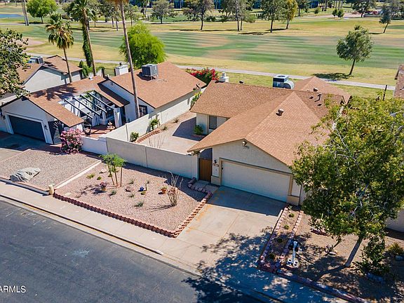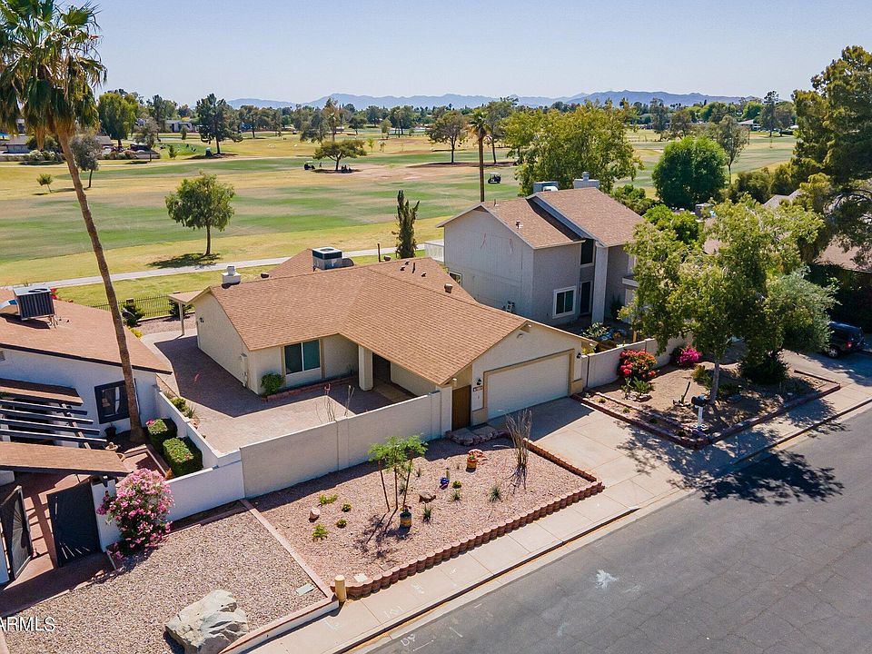 **GOLF COURSE LOT** Stunning 3 bedroom, 2 bath home perfectly situated on a spacious lot overlooking the 1st hole of Dobson Ranch Golf Course. Step into the freshly painted interior to see the open floor plan, neutral paint, and tile flooring in main areas and bathrooms. The living room seamlessly connects to the kitchen/dining area, providing ample space for entertaining. This single-story home offers carpeted bedrooms, two with large walk-in closets, ideal for your family's comfort. Outside, enjoy the covered patio, freshly painted exterior, and the low-maintenance desert landscaping. This beautiful Mesa home is ideally located near excellent schools and plenty of shopping and dining options. Don't miss out - come see for yourself why this is the perfect place to call home!