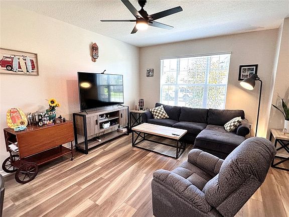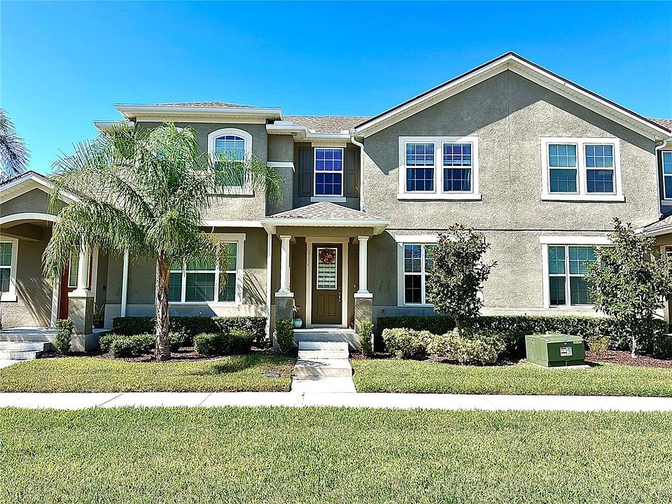 Welcome to Waterbrooke — Clermont’s premier gated community! This stunning 3-bedroom, 2.5-bath townhome, built in 2021, offers modern comfort and style in a prime location. Step inside from the covered front porch to discover an open-concept floor plan that’s perfect for entertaining or relaxing with family. High ceilings and recessed lighting throughout the main level create a bright, airy atmosphere. The kitchen features sleek quartz countertops, modern gray duraform cabinetry, stainless steel appliances, a large pantry, and an inviting breakfast bar — ideal for casual dining or gatherings. Upstairs, the spacious primary suite boasts vaulted ceilings, a generous walk-in closet, and a private balcony. The en-suite bath includes dual quartz vanities, a glass-enclosed shower, and a separate water closet for added privacy. Two additional bedrooms share a full bath, and the conveniently located upstairs laundry makes daily living effortless. Residents of Waterbrooke enjoy access to exceptional amenities including a resort-style pool, splash pad, clubhouse, fitness center, playground, dog park, and scenic nature trails. Conveniently located minutes from major retailers such as Target, Publix, Walmart and Costco, as well as easy access to the Florida Turnpike, 408, and 429. Downtown Orlando, major shopping destinations, and world-class theme parks are just 30–45 minutes away. Experience the perfect blend of modern living and community convenience in this beautiful Waterbrooke townhome!