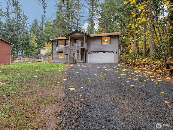 Updated and truly living like new, this 1,733 sqft home is conveniently located just inside the Clearwood gate. Offering 3-bedrooms and 2-full baths, this home features new interior & exterior paint, new carpet, LVP flooring, quartz countertops, new cabinets, doors & millwork, new wall heaters, appliances, roof & gutters. The primary suite includes a walk in closet and private bath. 2 car garage plus 427 sqft of unfinished bonus space is off the garage and rec room. The home is tucked up away from the road and surrounded by large firs giving it a private feel with a large side yard & new black gravel drive. Access three lakes, boat launches, miles of scenic trails, picnic areas, sport courts, pool and only 40 minutes to JBLM. Move in ready!