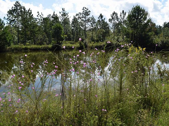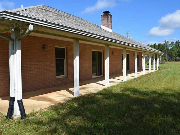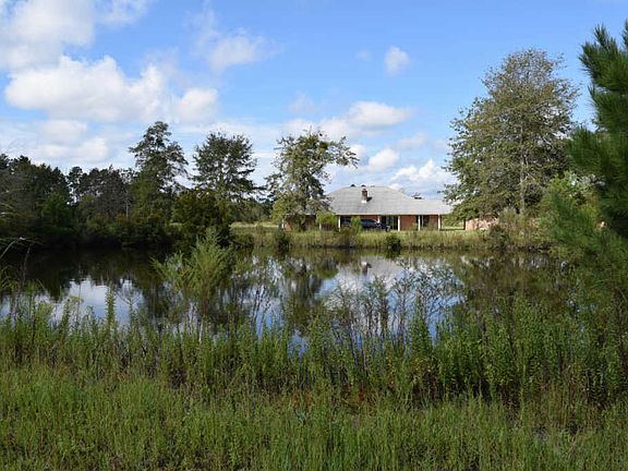 Beautiful property on perfectly square 10 acre corner parcel with pond. This home is situated in the county only about 30 minutes from the beaches and 20 minutes from I-10. The large all brick home and detached 2 car garage is solid with lots of covered porches and walkways. The kitchen has lots of oak cabinets in good shape hard surface counter tops has plenty of room for an eat in situation. There is open access to the large dining area.The living room is huge has a wood burning fireplace is open to the dining area. Common bath has jetted tub master bath stand alone shower walkin closet master bedroom exits through slider to huge covered back porch. There is a pond