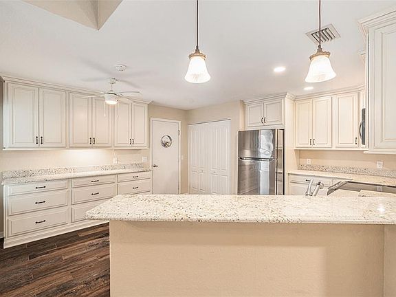 Convenient stair lift chairScreened in lanaiBeautifully updated townhomeBrand-new storm windowsStunning newer kitchenBeautifully manicured yard