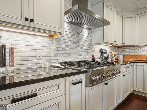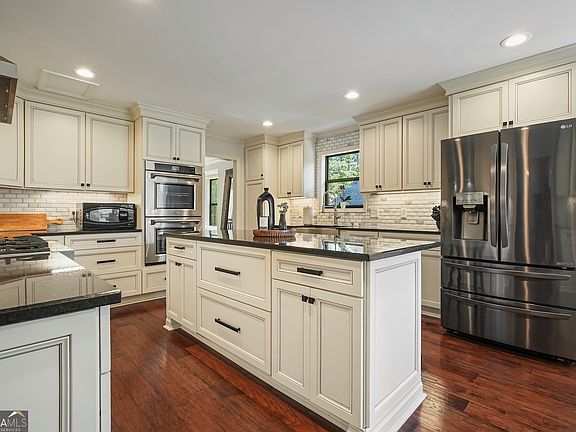 Introducing this architecturally stunning modern-contemporary residence, tucked within a quiet cul-de-sac in one of East Cobb's premier enclave neighborhoods. Completely reimagined with a designer's eye for detail, this home blends organic warmth and sophisticated modern style-a true showcase of craftsmanship and comfort. Step inside to soaring cedar-lined vaulted ceilings and rich walnut hardwood floors that flow seamlessly throughout the main floor. The gourmet kitchen serves as the heart of the home, boasting granite countertops, a grand center island, professional-grade cooktop range, stainless double wall ovens, and custom cabinetry-perfectly tailored for both everyday living and elevated entertaining. The formal dining room offers an elegant setting for special gatherings, while the family room impresses with its masonry stone fireplace and dramatic vaulted ceiling. The owner's suite is a tranquil retreat featuring walk-in closets with built-in shelving and a spa-inspired bath complete with a massive dual-head shower, quartz double vanity, and wood-look tile flooring. Elegant wrought-iron balusters and designer lighting enhance the home's contemporary aesthetic throughout. The finished terrace level expands the living experience with limitless possibilities-ideal for an in-law or guest suite, home office, gym, or game room. It includes a bedroom, full bath, recreation area, and a stylish bar, perfect for entertaining or multi-generational living. Step outdoors to your private oasis: an extended deck crowned by a custom gazebo, overlooking a lush, fenced backyard designed for relaxation and play. Located minutes from East Cobb's top-rated schools, fine dining, boutique shopping, and entertainment, with easy access to I-75, I-575, and Downtown Atlanta, this home offers the rare combination of modern luxury and prime location.
