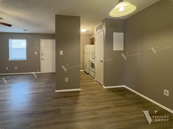 LEASED until July 2025. Check out this beautifully renovated one-bedroom, one-bathroom unit at Oakwood Apartments in the Bingham neighborhood. Upon entering the unit, you'll be welcomed by a spacious living room and dining area with luxury vinyl plank flooring throughout. The cozy galley-style kitchen boasts warm rustic wood cabinetry, a dual sink, laminate countertops, and a pass-through window to the living room. Appliances include a refrigerator, dishwasher, microwave, and stove with oven. A cozy dining area is adjacent to the kitchen, along with a laundry closet that includes a stacked washer and dryer. The bathroom features a convenient bathtub and shower combo, while the bedroom offers a spacious full-size closet for ample storage. The tenant covers all utilities, while trash service and lawn care are provided. Conveniently located at the intersection of Cherry and Barnes, across the street from Bingham Elementary School and close to Central High School. Apply online now and make this place yours! Pet-friendly property with two pets max. Some breed restrictions apply. Applicants must meet the following rental requirements: (1) Household income must be at least 2.75 times the monthly rent. (2) No evictions within the last 5 years. (3) A minimum credit score of 600 (a score of 550-599 may be approved at the property manager's discretion and double deposit is required) (4) Pass a background check.