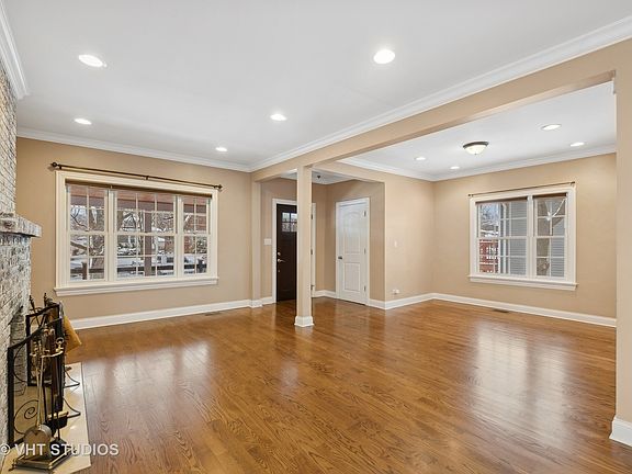 Stunning Three-level Open floor plan with hardwood floors and crown moldings throughout the home. Five Bedrooms, Two Master Suites, a Large Living/Dining Room with Fireplace, a Spacious Family Room with an additional eat-in area, and Fabulous Outdoor Space. Welcome to this incredible home located in the heart of Galewood, Chicago. Designed with comfort, functionality, and style in mind, this home offers everything your family needs, all within walking distance of excellent neighborhood amenities and Metra. Key Features: * Upstairs you will find Two Master Suites: Spacious master bedrooms with en-suite marble bathrooms provide ultimate comfort and privacy for you and your guests. * Cozy Large Living/Dining Room with brick white-wash fireplace: Relax by the charming fireplace, perfect for creating a warm and inviting atmosphere and family gatherings. * Additional Bright Spacious Family Room with another small dining area: The large family room has French doors open to a spacious porch and a beautifully landscaped backyard. * Modern Kitchen: Enjoy a fully updated kitchen featuring brand-new appliances, ample granite counter space with a peninsula, and sleek cabinetry. * Hardwood Floors: Gleaming hardwood floors flow throughout, adding timeless elegance to every room. * Finished Basement: A versatile space perfect for a playroom, home office, gym, and entertainment area along with a large, enclosed pantry. * In-Home Laundry: A washer and dryer are included for added convenience. Additional Features: * Fiber Cement Siding: Durable, low-maintenance siding ensures lasting curb appeal. Outdoor Features: * Large Backyard: Step outside to a serene backyard, two-car garage, a gazebo, and an iron fence wrapped around with a sliding back gate, perfect for entertaining, relaxing, or family gatherings. * Front & Back Porches: Ample outdoor space for lounging or coffee. Prime Location: * Walking Distance to Elementary School making mornings with the kids a breeze. * Walk to the Metra Train: Convenient access for commuting to downtown Chicago. * Nearby Amenities: Close to parks, dining, shopping, and everything Galewood has to offer. * Ideal for large families or hosting guests. This home blends modern comfort with family-friendly features, all in an unbeatable location.