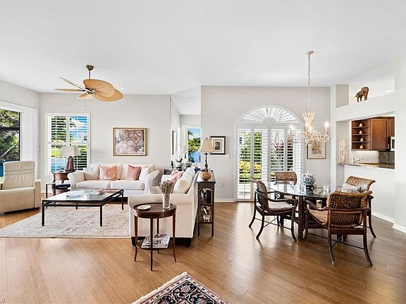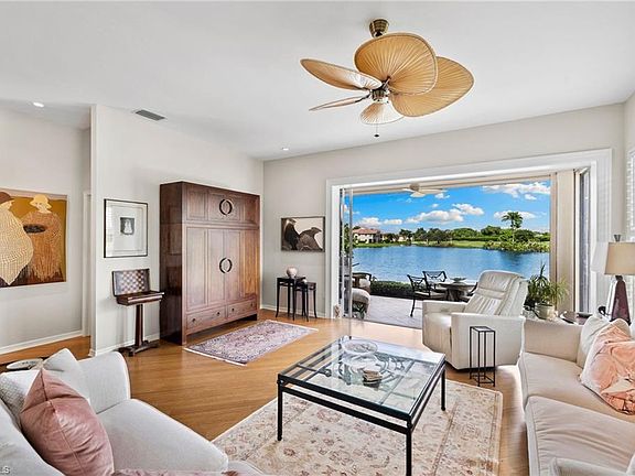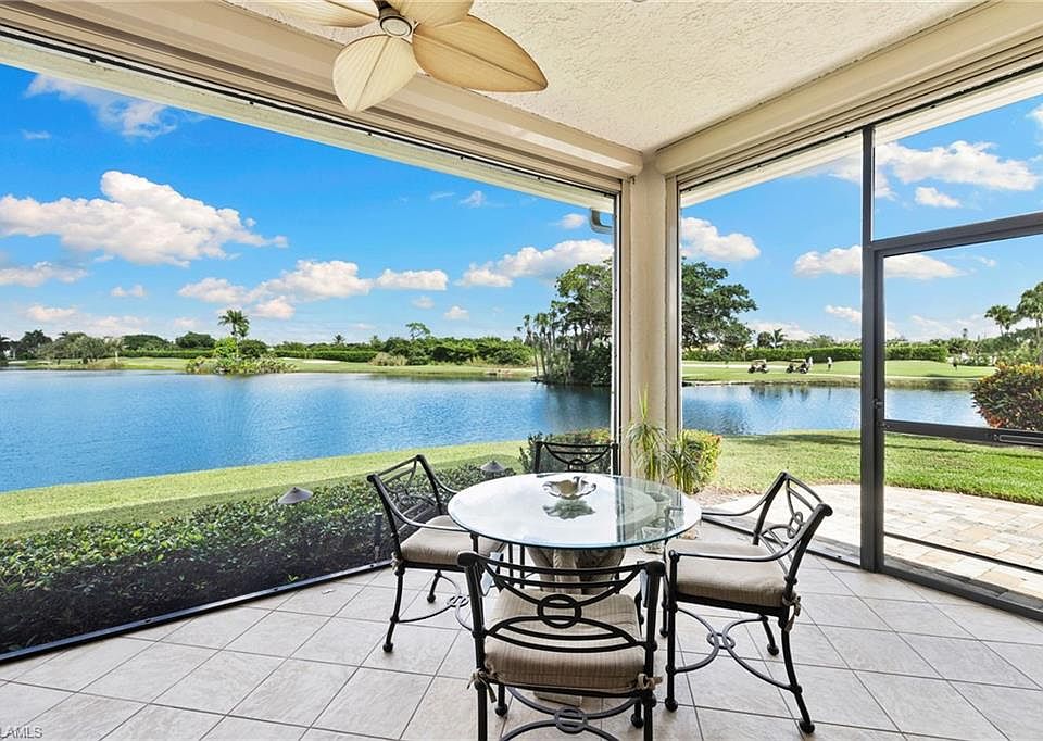 Enjoy spectacular panoramic lake and golf course views from this spacious 3-bedroom, 2-bath villa located in the highly sought-after Somerset community within Windstar on Naples Bay. The beautifully updated kitchen includes custom wood cabinetry, Bosch stainless appliances, granite counters and complements an exceptional floor plan that blends comfort and functionality. Additional features include wood flooring, plantation shutters, impact windows and doors, and much more. The large screened lanai provides the perfect place to relax and take in the scenery, while the brick-paver driveway and side walkway are surrounded by lush tropical landscaping. Other highlights include a two-car garage and a convenient location just across from the sparkling heated pool and spa. Somerset is known for its friendly neighbors, active social atmosphere, and exceptional curb appeal—This beautiful villa with its exceptional views and immediate full golf opportunity is ideal for embracing the Windstar on Naples Bay lifestyle. Windstar offers incredible amenities including: Tom Fazio designed golf course, newly redesigned clubhouse with spectacular views of Naples Bay, 72 slip deep-water marina with direct Gulf access in less than ten minutes, clay tennis courts, bocce ball, fitness, Keewaydin Island Beach Club with boat shuttle and private membership.
