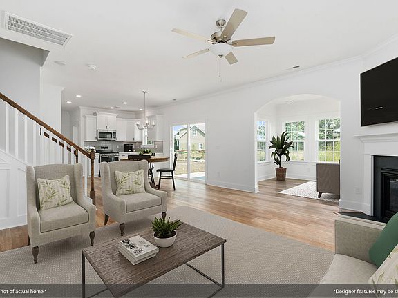 The Harbor is a two-story home featuring four bedrooms, two-and-one-half bathrooms, a home office, and a sunroom. The primary bedroom includes a tray ceiling, a walk-in shower, a tub combination, and a spacious walk-in closet. Three secondary bedrooms with spacious closets and a full bath complete the upstairs. The great room with a fireplace overlooks the kitchen and sunroom. The kitchen boasts quartz countertops, a double-door pantry, stainless appliances, and a gas range. Located just minutes from shopping, dining, and Historic Downtown Wilmington, Grand Park is in a prime spot. This Master Planned community offers outstanding amenities, including a swimming pool, a covered outdoor pavilion, walking paths, and lush landscaping.
