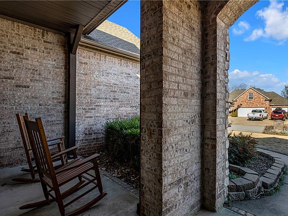 Nestled in the parks. Well-maintained home adjacent to the JB Hunt Park and minutes from I49 and the Razorback Greenway. This all brick 3 bed/2 bath house has additional office space, separate dining and laundry rooms. Spacious front entry with open floorplan and 10-foot ceilings. Living room has wood burning fireplace with wood mantle and granite hearth. Large primary suite with walk-in closet, dual vanities, jetted tub and walk-in shower. Granite throughout. Relax on the covered back porch with sound system and ceiling fan. Fenced backyard with portable raised-bed gardens. Solar panels keep electric bills low and convey at no cost to the buyer. Upgrades include wood flooring, stainless steel appliances and HVAC. Washer, dryer and kitchen refrigerator and other items convey at no value.