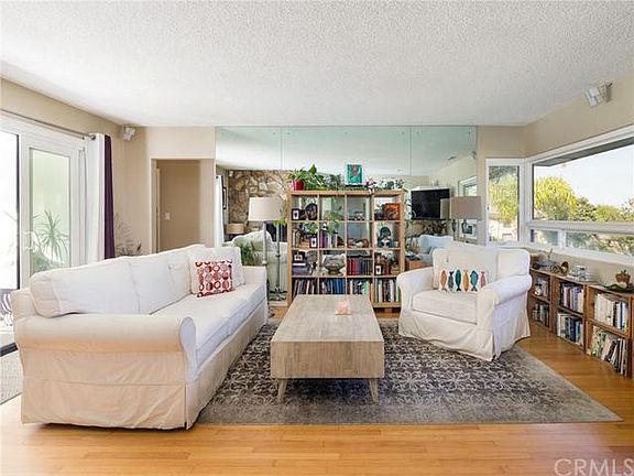 Remodeled mid-century modern gem with harbor and ocean views in Rancho Palos Verdes. This classic mid-century with 2 oversized bedrooms on the same level has been extensively remodeled. Gorgeous hardwood and period perfect stone adorn the floor. The striking new windows and roof create the ultimate first impression. The kitchen enjoys tile counters and backsplash with clean white cabinets surrounded by stainless steel appliances. A modern refrigerator is also complimented by double ovens, dishwasher and matching cook top and ventilation hood. Create your personal illumination with the Philips Hue lighting system found thru out the home and office area allowing complete control of colors and settings right off your phone. The master bedroom opens to the amazing court- yard filled with lush landscaping and a covered ultra-chic patio. The oversized living room is cozy and comfortable and is anchored by a period perfect stone fireplace and beautiful art walls. The oversized garage has been upgraded with interior finished walls, custom lighting, internet, and TV making this space a great place to hang out. Lushly landscaped grounds include newly installed sod and sprinkler system ...get this...a private secret door to the Lorraine trail connecting you to miles of the most amazing walking trails winding thru the Palos Verdes countryside. Additional features include central air conditioning, separate laundry room which includes the washer and dryer, new plumbing, new electrical panel, and new doors and windows. The Eastside location offers great views, great weather, short freeway commute and access to the award winning Palos Verdes school system.