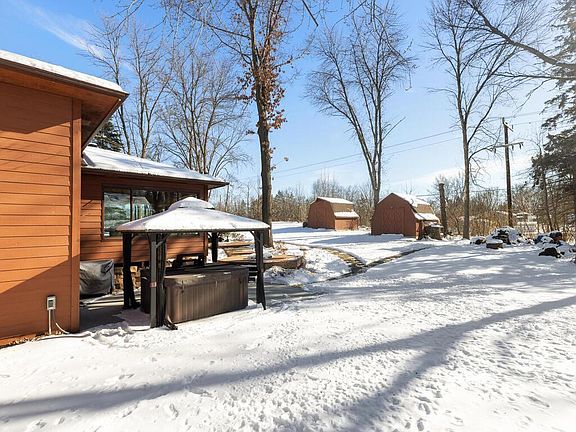 This beautifully designed three-level split home offers 4 bedrooms and 3 bathrooms, tucked away on a peaceful cul-de-sac. The main level features an open concept layout with a fantastic four-season sunroom addition. The kitchen is a chef's dream, boasting a spacious center island, stainless steel appliances, and a stunning granite countertop. Enjoy the soaring vaulted ceilings and the convenience of an on-demand water heater. The luxurious jetted bathtub invites relaxation, while Anderson windows and patio doors bring in natural light. Step out onto the main-level deck, or enjoy the lower level's walkout to a large patio perfect for entertaining. A cozy fireplace completes the lower level. The oversized garage includes a pass-through overhead door at the back of the home. Plus, there are two large sheds offering plenty of storage space. Roof replaced in 2020. Don’t miss this incredible opportunity!