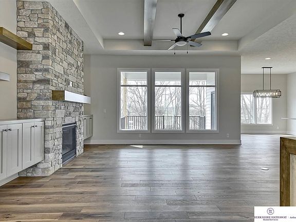 Ramm Construction's popular Jacklyn plan. Two main floor bedrooms and a den, two lower level bedrooms, nice wet bar with built ins and fireplace. Huge patio with fire pit backing to trees. Tall ceilings, open floor plan, walk-in shower, Timber tech decking.