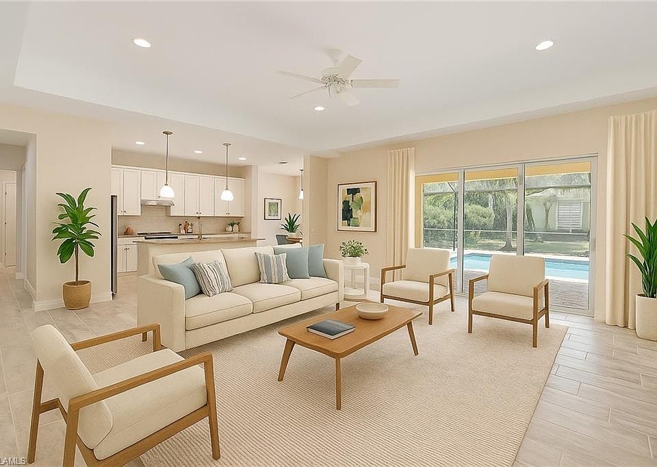 Imagine landing at the airport and being poolside in under 15 minutes. This nearly new, 3-bed + den, 3-bath, 3-car garage home in the private, gated enclave of Oaks of Estero makes seasonal living effortless and luxurious. Less than 10 miles from the warm sandy beaches, just 7 minutes to Coconut Point (where you’ve got every shop, restaurant, and service under the sun), and quietly tucked away from flight paths and highway noise, this home delivers the perfect blend of access and tranquility. With a wide paved driveway leading to your spacious 3-car garage, there’s plenty of room for guests, beach gear, and even your golf cart. This home is move-in ready and built for comfort, convenience, and peace of mind. Speaking of peace of mind. This home was built for it... Low E energy efficient hurricane impact glass windows, electric Kevlar hurricane screens, and a whole-house Generac generator (connected to city gas) that kicks on automatically during any power outage. No scrambling for propane or gasoline. No stress, just seamless protection. Let’s talk ease. Landscaping and yard maintenance? Included. Flooding? This lot stayed high and dry through Florida’s worst. You’re steps away from Estero Community Park’s walking trails, pickleball, amphitheater, and moreand just minutes to Miromar Outlets and Gulf Coast Town Center. Now let’s talk luxury. Inside, neutral tile floors flow throughout, with 8’ doors, 5” baseboards, tray ceilings, and custom lighting. The gourmet kitchen shines with white 42” cabinets, quartz countertops, subway backsplash, and stainless appliances—including a GAS cooktop and built-in wall ovens. The primary suite is your retreat: soaking tub, dual vanities, walk-in shower, and his & hers closets. Triple sliders lead from the open-concept great room to a private lanai and the pool oasis is already pre-plumbed for your future outdoor kitchen dreams. Only 23 homes make up this quiet, hidden neighborhood and this one’s ready for you to move in with no updates needed.