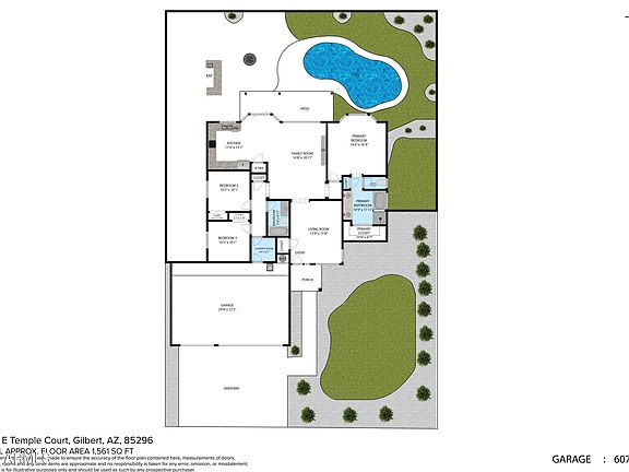 Huge covered patioRefinished poolOpen floor planSplit primary suiteWalk in showerGranite countertopsFull granite backsplash