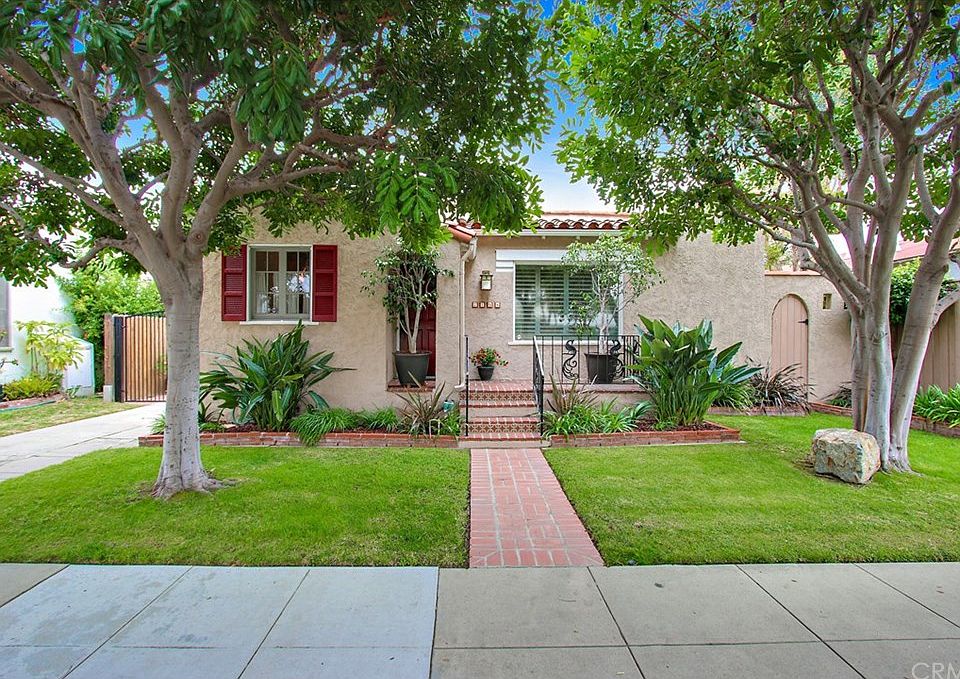 Vintage charm and modern elegance artfully combine in this classic 1930s Spanish style home. Nestled in the tree-lined Wrigley neighborhood, this home features stylish details like hardwood flooring, plantation shutters, built-in cabinetry, and recessed LED lighting. The remodeled galley kitchen boasts engineered stone counter tops, stainless steel appliances, dishwasher, pull out shelving, and French casement windows. The warmly lit living room is accented by a skylight, fireplace, large windows, and glass doors leading to an outdoor deck. A beautifully planted backyard wraps around the property with an elevated deck, flagstone path, and picturesque courtyard area perfect for relaxing. While it maintains its original Spanish style beauty, the home has seen numerous upgrades, including copper plumbing, updated electrical, double-paned windows, alarm system, and two spa-like remodeled bathrooms. Don't miss out on this comfortably updated classic.