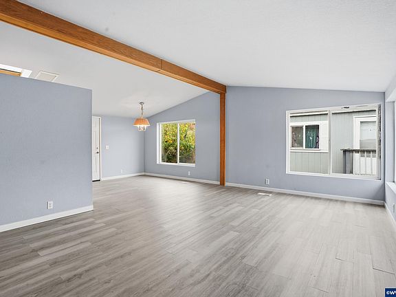 Airy, open-concept home in ALL AGES Park, in St. Helens, Oregon. OPEN HOUSE SUNDAY, NOV. 9, FROM NOON - 2:00PM. 2 bedrooms, 2 full baths, 1100 sf. Huge 100 x 40 lot. Vaulted ceiling. New vinyl plank flooring & interior paint throughout. Huge primary bedroom is 16" x 11.5", with ensuite bathroom and WIC. Kitchen has new SS stove and recent SS dishwasher. Double pane vinyl windows. Back deck and large, grassy (sloped) back yard. Space rent = $575. Parking for 3 cars. Park accepts some large dogs. Airy, open-concept home in ALL AGES Park, in St. Helens, Oregon. OPEN HOUSE SUNDAY, NOV. 9, FROM NOON - 2:00PM. 2 bedrooms, 2 full baths, 1100 sf. Huge 100 x 40 lot. Vaulted ceiling. New vinyl plank flooring throughout, new interior paint throughout. Huge primary bedroom is 16" x 11.5", with ensuite bathroom and walk in closet. Kitchen has new SS stove and recent SS dishwasher. Double pane vinyl windows. Back deck and large, grassy (sloped) back yard. Single-car garage with garage door opener, and cement parking area for more two cars. Budget-friendly space rent of $575 a month. RV parking is available from the park for $25 a month. Park allows max two pets, with total weight of both pets together capped at 100 pounds. Please note, some dog breeds are prohibited.