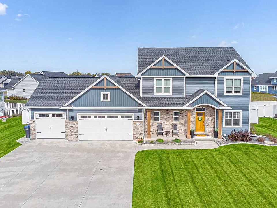 Highly motivated sellers! This nearly new open concept 2-story showcase 5 bedroom, 2.5 bathroom, & 3 car garage blocks away from Hemlock Creek Elementary could be yours! Thoughtfully designed, this home has beautiful shiplap, reclaimed wood beam accents, & Hunter Douglas blinds. The kitchen is a culinary masterpiece w/ granite countertops, decorative wood hood, convenient eat-in island, & spacious walk-in pantry. The LL family room offers additional living space as well as garage access. Step outside to the patio & landscaped yard complete w/ sprinkler system & fully fenced in yard w/ double hung doors that open to 8ft. You'll enjoy long-term savings on utility bills, this home is certified energy-efficient from the Focus on Energy Home Program.