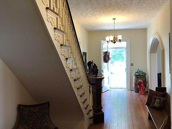 This 5 bedroom brick home,circa 1880's, was remodeled in 2000,with additional improvements made by the current owner. A must see stately home with 12' & 15' ceilings. An entry foyer that beckons to step back in days of old. Large rooms to enjoy recently painted. To replicate benefits would be very expensive today. Hardwood flooring throughout the house with tile updates in all the right places. Sits on approximately 3 1/2 acres with beautiful views of mountains. Front porch to enjoy as well as neat gathering spot on enclosed back porch with peaceful views. Private location with long driveway yet only short distance to Exit 113 on I-64 for any new owner who wants to commute east or west. Stairway from entry foyer to second floor beyond description. Even has a 5 stall stable on the property with level area for children to ride. It's out and off from but oh so close. Kitchen, dinning room are both so inviting for those that enjoy entertaining. Very few are like this one.