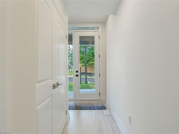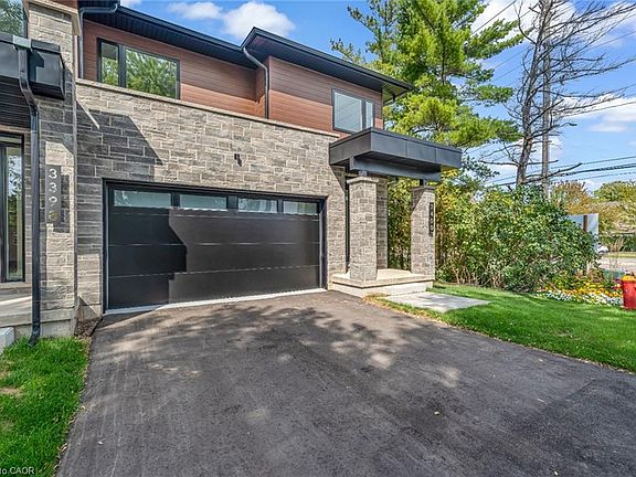 Brand-new executive town home never lived in! This stunning 1,799 sq. ft. home is situated in an exclusive enclave of just nine units, offering privacy and modern luxury. Its sleek West Coast-inspired exterior features a stylish blend of stone, brick, and aluminum faux wood. Enjoy the convenience of a double-car garage plus space for two additional vehicles in the driveway. Inside, 9-foot ceilings and engineered hardwood floors enhance the open-concept main floor, bathed in natural light from large windows and sliding glass doors leading to a private, fenced backyard perfect for entertaining. The designer kitchen is a chefs dream, boasting white shaker-style cabinets with extended uppers, quartz countertops, a stylish backsplash, stainless steel appliances, a large breakfast bar, and a separate pantry. Ideally located just minutes from the QEW, 407, and Burlington GO Station, with shopping, schools, parks, and golf courses nearby. A short drive to Lake Ontario adds to its appeal. Perfect for down sizers, busy executives, or families, this home offers low-maintenance living with a $349.83/month condo fee covering common area upkeep only, including grass cutting and street snow removal. Don't miss this rare opportunity schedule your viewing today! Tarion Warranty!