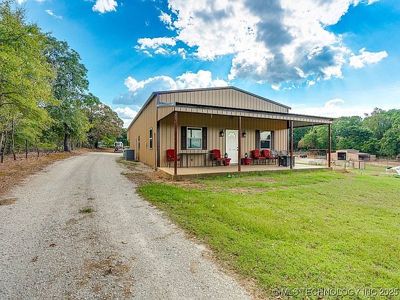 Low maintenance Barndo on 5acres mol and a complete Horse or Small Farm setup Living Kitchen area all an open area with 2 full bedrooms with 1 full bath/shower walk out the kitchen into yr garage/shop area with a separate room/office which is heated an cooled Overhead door an a exit door out onto the carport Now onto the 24x40 Shop with a 20ft Gable with concrete floor electric -- walk between the working pens to the Stables/animal Barn with 3 Stalls a Saddle Room with 6 Saddle Racks and a separate hay room Finally to the Lighted Roping Arena for all your late night practice -- there are 5 total Water spouts so no running hose from one area to the next and Electric is in each barn/area This is a perfect place for someone just wanting to downsize their lives