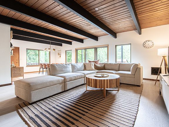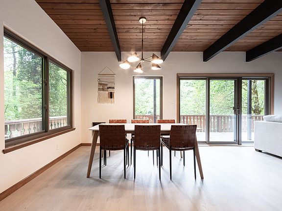 Charming Mountain Chalet for Rent 21545 E Hideaway Lane, Rhododendron, OR Nestled in the serene Timberline Rim community, this classic mountain chalet offers a perfect blend of rustic charm and modern comforts. Positioned on a sloped lot backing to greenspace, the home provides privacy and picturesque views, all within close proximity to the Sandy River and Timberline Rim amenities. Property Features: Bedrooms: 3 Bathrooms: 2 full baths Living Space: 1,586 sq ft Lot Size: 6,969 sq ft Year Built: 1979 Parking: 1-car attached garage with additional RV parking Interior Highlights: Kitchen: Equipped with stainless steel appliances, including a free-standing range and refrigerator, dishwasher, and disposal. Dining and livingroom: Showcases beamed ceilings, a pellet stove fireplace, and sliding doors leading to a spacious deck Bedrooms: Primary bedroom on the main level; two bedrooms upstairs. Upper-level bedrooms include features like balconies, ceiling fans, and double closets. Additional Amenities: Laundry room with washer and dryer, Andersen windows, and a 400+ sq ft raised deck. HOA Amenities include: Access to athletic court, commons, management services, meeting room, pool, and tennis court. Zillow Location Benefits: 20 minutes to world-class skiing destinations. 15 minutes to Sandy, OR. Less than an hour to Portland and major highways. This beautifully maintained chalet is a rare rental opportunity in the desirable Timberline Rim community. Experience mountain living with modern conveniences in a tranquil setting. Renter is responsible for all utilities. No smoking. No pets.