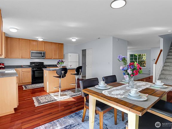 Welcome to this spacious 5 bedroom, 2.5 bath home in Kent. Meticulously maintained and updated with new carpeting and fresh paint throughout - Enjoy bright natural light and a spacious floor plan. One bedroom and full bathroom on main floor. Enjoy the family room with cozy fireplace. Chef’s kitchen with gas range flows to the dining area. Sliding glass door leads to a large, fully fenced backyard—ideal for entertaining, play, or gardening. Upstairs, retreat to the luxury primary suite featuring a spa-like bath and oversized walk-in closet. Additional highlights include a 2-car garage, quiet street setting, and community amenities with walking trails and playgrounds. Conveniently located near Lake Sawyer, schools, shopping, and dining.