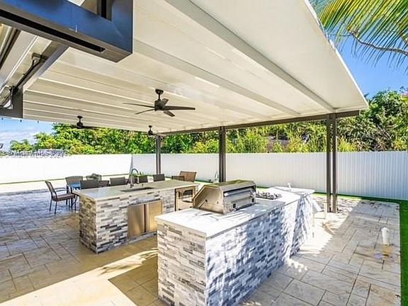 This exquisite 4-bedroom, 3-bath home features a fully remodeled kitchen with premium appliances and sleek finishes, an open-concept layout with spacious living areas and laminate flooring throughout, and a private outdoor oasis with a stunning patio and fully equipped summer kitchen, offering a rare opportunity to own a stylish, turnkey residence perfect for entertaining or relaxing.