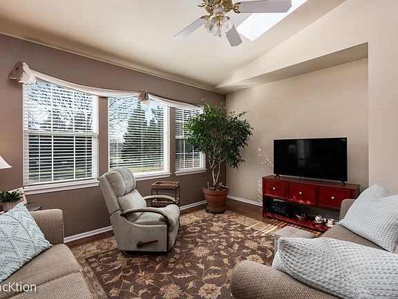 Welcome to Carillon Lakes, an active adult community. Enjoy carefree living at it's finest. Relax and enjoy the amenities offered to you, no more landscaping, no more snow shoveling, no more worries! This stunning 2 bedroom, 1 bath home has been completely decorated with a warm inviting feel. The living room has vaulted ceilings with skylights and has been freshly painted. The kitchen has 42 inch tall cabinets for plenty of storage. Granite counter tops and all newer appliances. The breakfast room is light and bright with a gorgeous backyard view. All main rooms have easy care bamboo flooring. The bedrooms have cozy carpeting in neutral color. The bath has ceramic flooring, double sinks, and walk in shower. All of the windows have custom blinds and the sliding glass door has double custom sheers, The HVAC system is 4 years old. When you relax on the patio you can have shade with the awning. In the community you can enjoy the free three-hole golf course, the tennis and pickleball courts, the indoor and outdoor pools, the exercise equipment and the walking paths and fishing and so much more. All are included in your monthly assessment. Come to see this home and meet your new neighbors!