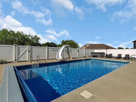 You’ll be impressed by the amazing condition and extensive upgrades throughout this beautiful two-story home. Featuring 3 same-level bedrooms, 4 bathrooms, and a full primary suite complete with a ¾ bath and walk-in closet, this home combines comfort and style in every detail. The main floor offers a warm and inviting living room highlighted by an electric fireplace with a stunning floor-to-ceiling stone surround and wood mantle. The kitchen and dining areas feature tile flooring, abundant cabinetry, granite countertops, stainless steel appliances including a 1 year old refrigerator, and a spacious walk-in pantry. The fully finished lower level provides an additional family room, a custom bar area perfect for entertaining, and a convenient half bath. Step outside to your backyard oasis — an incredible in-ground saltwater pool with a large patio area, fully enclosed by a vinyl privacy fence, plus a maintenance-free Trex deck for relaxing or entertaining. Pride of ownership shines throughout — see the full list of updates in the supplements tab. This home truly has it all!