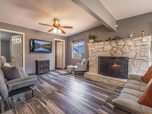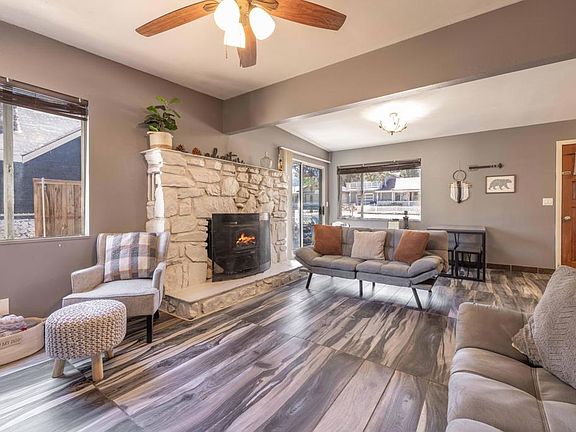 Back on the market! No fault of sellers! Home inspection completed along with repairs! Roof was replaced in the past 2 years and recently certified! AB38 fire inspection completed! This house is ready to be your full time home or vacation home! Escape to this charming Big Bear cabin, nestled in a peaceful residential neighborhood just 15 minutes from downtown and steps away from a wonderful children's park and walking trails. Large double lot and Open floor plan Featuring three cozy bedrooms and a beautifully remodeled bathroom, this turnkey retreat comes fully furnished, including all appliances, making it move-in ready for your family or guests.The cabin boasts an open floor plan with a full-size kitchen including stainless steel appliances. Perfect for entertaining guests or enjoying quiet mountain mornings. Outside, you'll find ample parking on a flat lot and a fenced-in yard, ideal for pets or outdoor gatherings. A large side shed offers plenty of space for tools or gear, adding convenience for mountain living. 220V. for EV Charging installed on side of home! Ready for your electric car. A standout feature is the newly replaced roof in 2023, ensuring peace of mind for years to come. Whether you're seeking a serene retreat from the summer heat of the desert or considering it as a part-time vacation rental, this cabin offers the perfect combination of comfort and charm.Don't miss the chance to own this inviting getaway--schedule your showing today and experience the cool mountain air and timeless appeal of Big Bear living!
