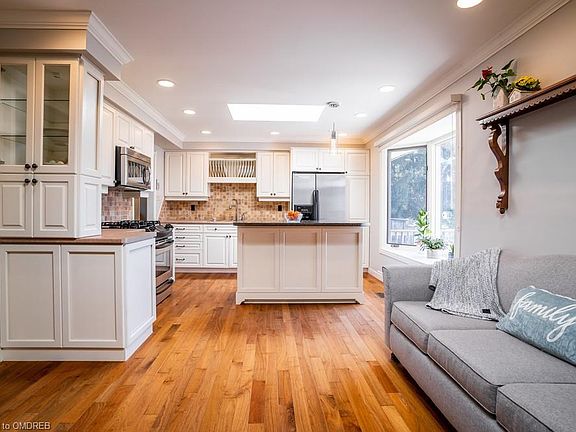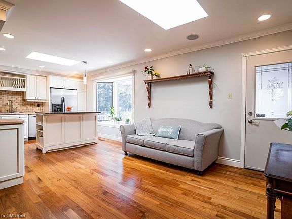 Have you been looking for a home in the country that has a pool, 1 acre lot & on a quiet child-friendly court? Your search stops here! This rare and meticulously kept 3+1 bedroom, 1490 Sq Ft Bungalow is located in the lovely community of Kilbride. Situated on a stunning lot with 170' in the rear of the property backing onto greenspace & offering a bright Western exposure with towering trees and privacy. Enjoy the long driveway which can fit 10+ cars! As you enter this gorgeous home, you will notice neutral colours, hardwood flooring, crown molding, upgraded trim work & built-in audio speakers throughout! The kitchen is open concept to family room & features centre island with granite countertop, newer cabinetry, décor backsplash, stainless steel appliances & pot lights. In addition, there is lots of natural light with two skylights & large bay window over looking your "park-like" backyard. The dining room is also filled with natural light through the large bay window and offers a beautiful view of large pine trees and long driveway. Master bedroom offers en-suite bathroom, walk-in closet plus additional custom organizers, built-in speakers & access to large backyard deck with scenic views. Bedrooms 2 & 3 have been recently painted and offer a good space for growing family. Lower level offers great layout with a rec room which could be used a gym & also a separate cozy family room with gas fireplace. In addition, there is a 4th bedroom, 3-pc washroom, large laundry/utility room, office and direct access to garage. The backyard offers resort style & cottage living! Enjoy the oversized & fenced in pool, hot tub, 13'x11' sun room, two-tiered deck, horseshoe pit, large vegetable gardens and sitting by the large firepit absorbing all of the country beauty! Walk to Kilbride Public School, Parks, Trails, Tennis Club & close to 9 Golf Clubs!