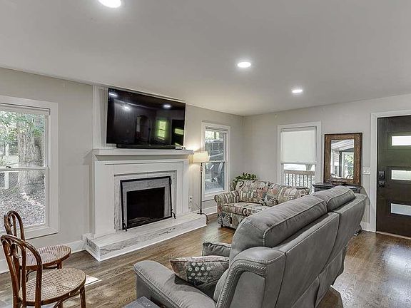 This adorable lakefront cottage offers peaceful year-round VIEWS of LAKE LANIER! While there is NOT A DOCK, bring your kayaks, SUPs, and fishing poles and enjoy an EASY WALK down to this quiet cove for a quick paddle over to Bald Ridge Marina and SmokeyQ BBQ. There is plenty of room to park several cars and boats/jet-skis on the level driveway with Mary Alice Park, Charleston Park, and Young Deer Park boat ramps just minutes away. Enjoy the beautiful front yard with a huge and healthy Japanese maple, canna lilies, and crape myrtle trees from the rocking chair front porch. Inside is a quaint open floor plan with panoramic water views. The PRIMARY BEDROOM is located on the MAIN LEVEL with hardwood floors that flow into the living room, dining area, and updated kitchen with ss appliances and a built-in wine fridge. The earth tone green kitchen cabinets provide ample storage space. Topped with white QUARTZ counters, the gold cabinet hardware and stylish kitchen sink faucet complement the natural exterior color palette. With natural light pouring in from the floor to ceiling picture windows, dining is not just an event, it's an experience. The lower level offers 2 more bedrooms that share an updated tiled hall bathroom, 2 hallway closets for extra STORAGE, and the utility-laundry room combo. A SUNROOM is attached off the back for more mosquito-free views of Lake Lanier sunrises. The crawlspace storage has electricity and is large enough for tools, mowers and lake toys. There is a leased propane tank on the side yard that services the dryer and the propane lines could easily be extended to the water heater and cooktop. While you will never want to leave, there is NO HOA or long-term rental restrictions; the Eagle Creek Shore Homeowners Association pool and clubhouse are walking distance and an optional membership is available for amenity privileges! Conveniently located just minutes from Cumming Marketplace, there is plenty of shopping, restaurants, hospitals, and easy access to SR 400/US 19. This is your opportunity to welcome priceless water views into your life at an affordable price. This property is also available for lease purchase or rental.