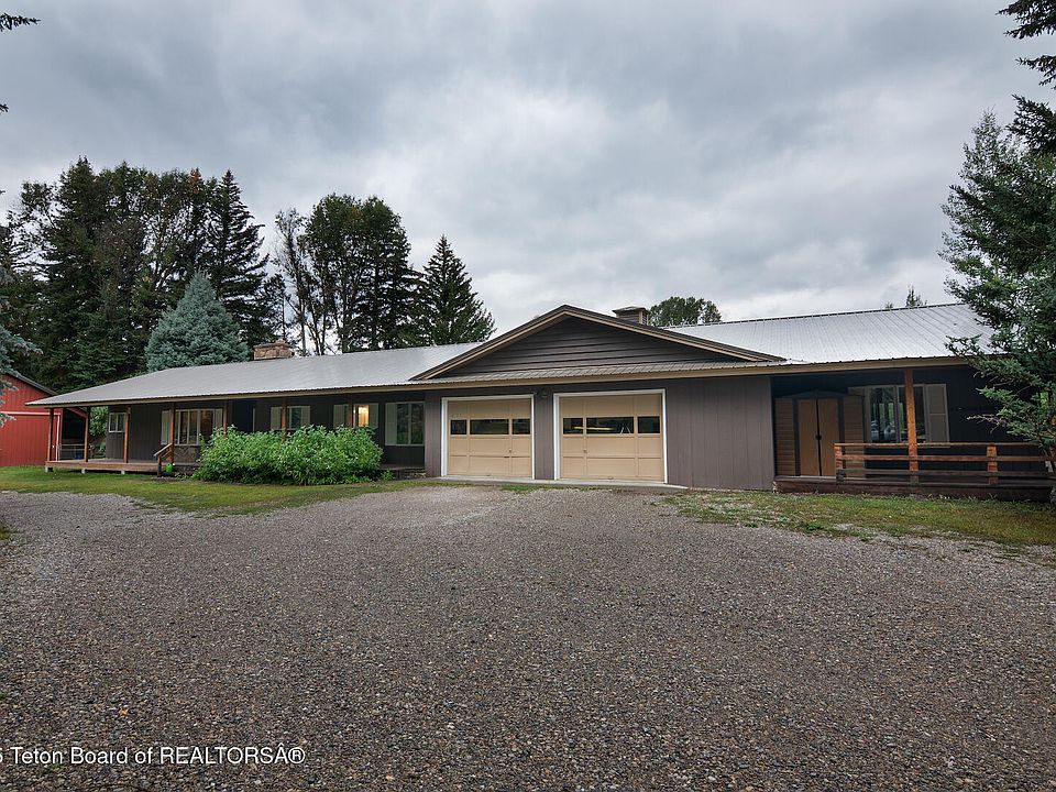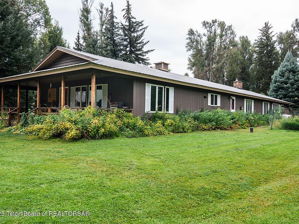 located along the desirable Moose-Wilson Road and adjacent to the scenic bike path, this rare 4-acre horse property offers both convenience and freedom with no CC&R's. Just minutes from Wilson Elementary School, the legendary Jackson Hole Mountain Resort, the Wilson Boat Ramp launch, and R Park, the location combines everyday ease with world-class recreation. The main residence spans 3,200 sq. ft. and features 3 bedrooms, 2.5 bathrooms, beautiful maple hardwood floors, a large open kitchen, spacious family room, and a cozy wood-burning stove. A covered porch invites year-round enjoyment of the surrounding views. The home also includes a private mother-in-law suite with its own bedroom, full bathroom, and covered porch, providing flexibility for guests or extended family. Adding further versatility, the stand-alone guest house offers 1 bedroom, 1 full bathroom, a separate laundry room, soaring ceilings, maple floors, and its own wood-burning stovecreating a warm and inviting retreat.