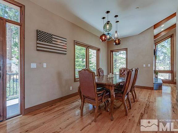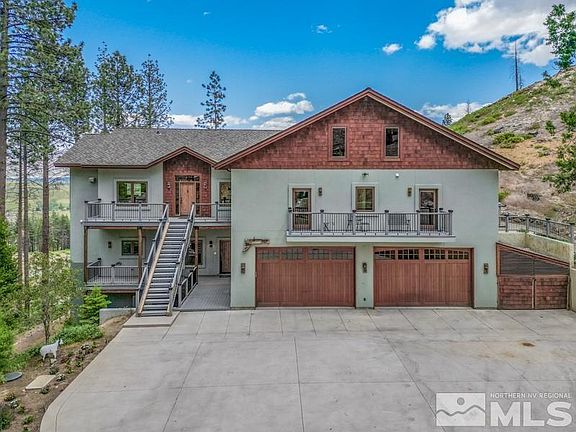 Beautiful mountain home in Franktown area of West Washoe Valley, 21 minutes to Reno/Tahoe Intl Airport, 15min. to Carson City, 37 min to Lake Tahoe. 6 acres offers trees, panoramic lake views, sunshine and access to great hiking. Main residence: kitchen with alder cabinets, granite counters, large island, veggie prep sink, subzero fridge, Dacor double oven/6 burner range with pot filler, walk-in pantry, breakfast bar seats 6, coffee/cappuccino bar, slide-out self closing drawers, dump waiter. WATCH VIDEO!, Huge master with fireplace, master bath with huge walk-in closet/dressing rooms (all BRs have walk-in closets and bath), two water closets, steam/shower. tub with fireplace and swim spa off master. Jack & Jill BRs with lofts, heated floors in all baths. Hickory flooring and alder doors throughout. Two BR, two bath in-law/guest quarters with full kitchen/family room/laundry. 3000 SF four car garage & shop w/ 220 power, half bath, storage, heat and vent hood. Two green houses. Views from every room.