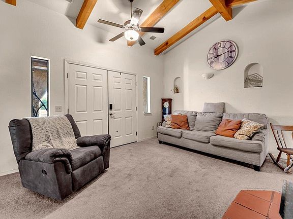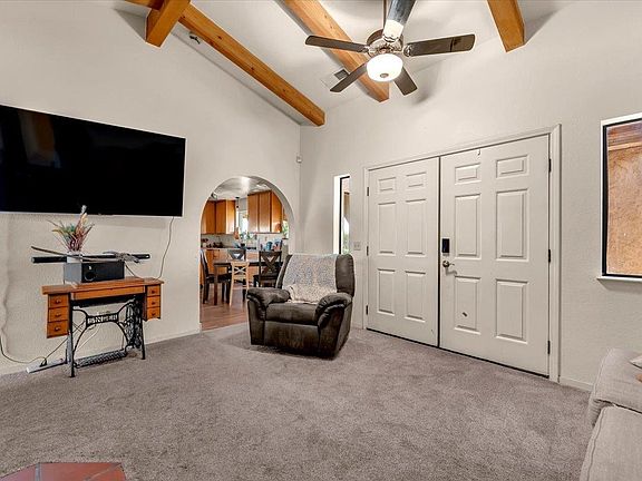 Spanish-Style Home on Almost 20 Acres! This charming Spanish-style home features classic arches, a tile roof, and a warm, inviting feel. The family room has beautiful exposed beam ceilings and a cozy wood stove—great for relaxing or gathering with friends and family. The large primary bedroom offers plenty of space and comfort. Outside, you’ll find just under 20 acres with room for animals, gardens, orchards, or whatever you can dream up. A variety of fruit trees including orange, lemon, lime, avocado, grapefruit, pear, pomegranate and persimmon already established. Owned solar and a Tesla battery add to the efficiency of this home as well as newer windows. Sale will include two 9.91 parcels. Whether you're looking for space to spread out or a peaceful place to call home, this property has a lot to offer.