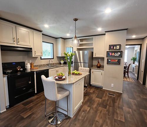 GOBBLE UP SAVINGS this November! When you purchase a home for $50,000 or more, enjoy 4 MONTHS FREE SITE RENT & NO APPLICATION FEES*! EXPIRES 11/30/25! ACT FAST! *Restrictions Apply. Get ready to fall in love with this charming 3-bedroom, 2-bath manufactured home nestled in the inviting community of Green Level, North Carolina. From the moment you step inside, you're greeted by a spacious open-concept design that feels fresh, modern, and perfect for today's lifestyle. The living room flows effortlessly into the kitchen and dining area, creating a light-filled space ideal for hosting friends, sharing family meals, or simply unwinding after a long day. The kitchen offers plenty of cabinet storage, modern appliances, and a generous island that's perfect for meal prep or morning coffee. Relax in your private primary suite, complete with its own full bathroom. Two additional bedrooms provide great flexibility for family, guests, a home office, or hobbies-all conveniently served by a second full bath. Outside, enjoy a roomy yard with endless possibilities-gardening, play space, outdoor gatherings, or just soaking up the peaceful surroundings. With nearby shopping, schools, and easy access to major routes, you'll enjoy the perfect blend of small-town comfort and everyday convenience. Move-in ready and full of charm, this home is a fantastic find. Come see it for yourself and make it yours!I prefer this response