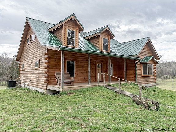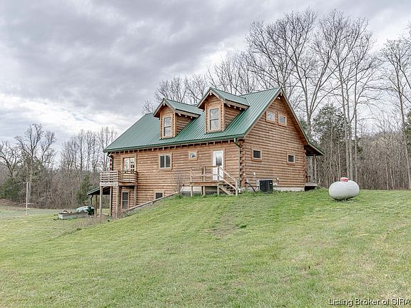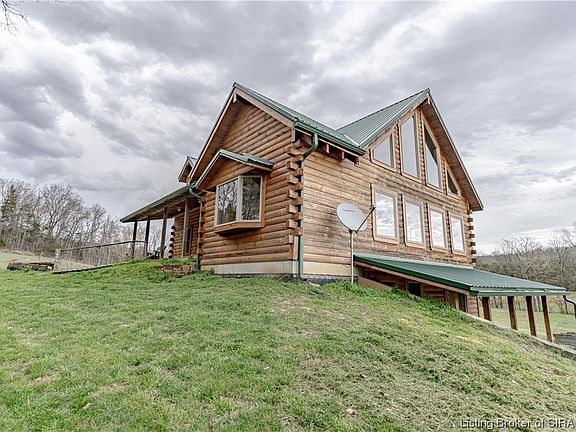 This is a once in a life time, dream property! These gorgeous 16 acres sit on the border of a nature preserve that adjoins Harrison State Forest and O'bannon Woods. Walk out your front door and explore nature and return to your cozy log home. This log house was built during 2018-2020 and is awaiting the final touches from its new owners. At 80% completion, it features amazing natural light and some of the most breathtaking views Southern Indiana has to offer. This home features a large open living area, two bedrooms, two full baths and a walk-out basement. The large two story metal building offers a generous work space with concrete floors and a large finished living space with loft in the back section. There is plenty of height for mechanics and craftsmen to work with generous electric to run your equipment.