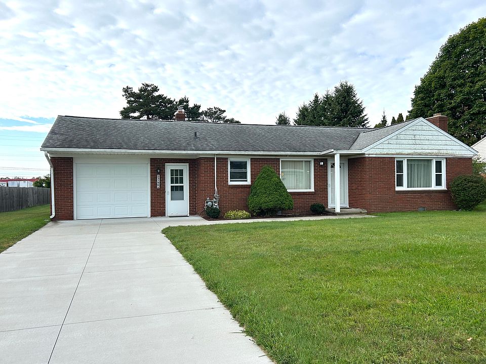 Welcome to this charming, one-level ranch home dressed in timeless brick siding and thoughtfully updated for modern comfort. Large vinyl windows flood the light-filled living room—recently refreshed with plush new carpeting—and a cozy gas fireplace anchors the space, perfect for relaxing evenings. You'll find two spacious bedrooms, each boasting double closets to keep belongings neatly organized; the second bedroom also sports brand-new carpeting. Outside, the clean, well-maintained property features newer concrete on both the driveway and sidewalk, while an expansive 85′ × 179′ yard offers ample room for gardening, play, or entertaining. Meticulously cared for and move-in ready, this home combines effortless style with generous indoor and outdoor living.