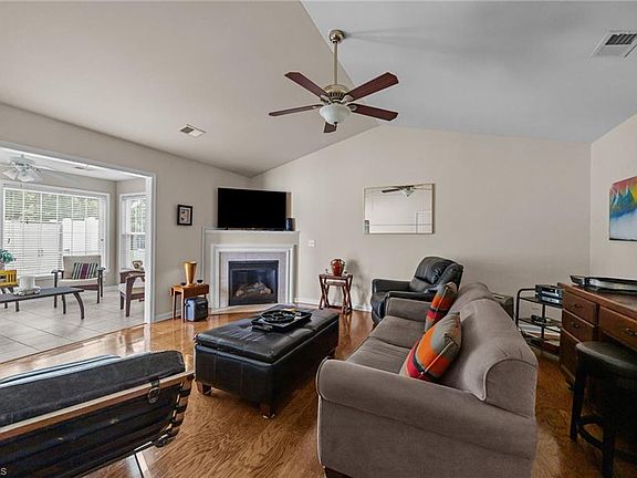 Welcome to easy one-level living in this immaculate 3 br/2 ba townhome featuring thoughtful updates & rare outdoor space. Major upgrades are already complete—new roof (2024), new windows (2024), and new HVAC (2023)—giving you peace of mind for years to come. Enjoy one of the largest paved & landscaped backyards in the community, perfect for entertaining, gardening, or simply relaxing with the sunset. A stunning four-season Carolina room extends your living space, while the patio invites quiet evenings outdoors. Inside, the primary suite offers enhanced comfort with a Safe Step Walk-in Tub, handrails, & other safety features. The kitchen includes a refrigerator that conveys. Furniture may be purchased. This home also comes with a bonus—six months of HOA dues included with acceptable offer! Conveniently located near I-40, Hwy 311 & the Piedmont Triad Farmers Market, you’ll love the blend of accessibility & serenity this home provides. No sign in yard. Move-in ready and waiting for you!