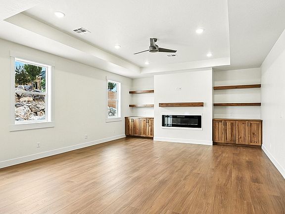 Discover this New Construction 4-bed, 2-bath home in The Bluff at South Mountain, with no HOA! This 2,055 sqft home boasts walnut cabinets, granite countertops, and tile backsplash in the gourmet kitchen, complete with a butler's pantry. The open living room impresses with a tray ceiling, electric fireplace and built-in walnut cabinets and shelving. The primary suite features a large tiled and euro glass walk-in shower, soaking tub, and dual sinks. The 3-car garage is the star of the show! The 3rd bay is 47' which would allow for a 4th car or a workshop. The garage features LED lighting, an EV plug, plumbing for a sink and hot and cold water. The front landscaping is complete and the back is retained highlighting the natural rock outcroppings and breathtaking views! Home is move in ready!
